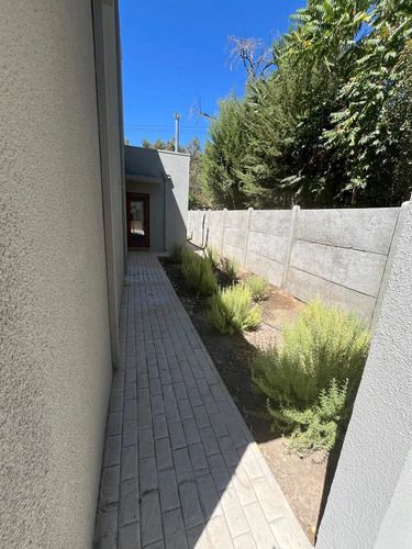 El patio destaca por su terraza, circulaciones con hormigón estampado, jardín con riego automático y derechos de agua. Además, tiene estacionamiento para 6 vehículos.