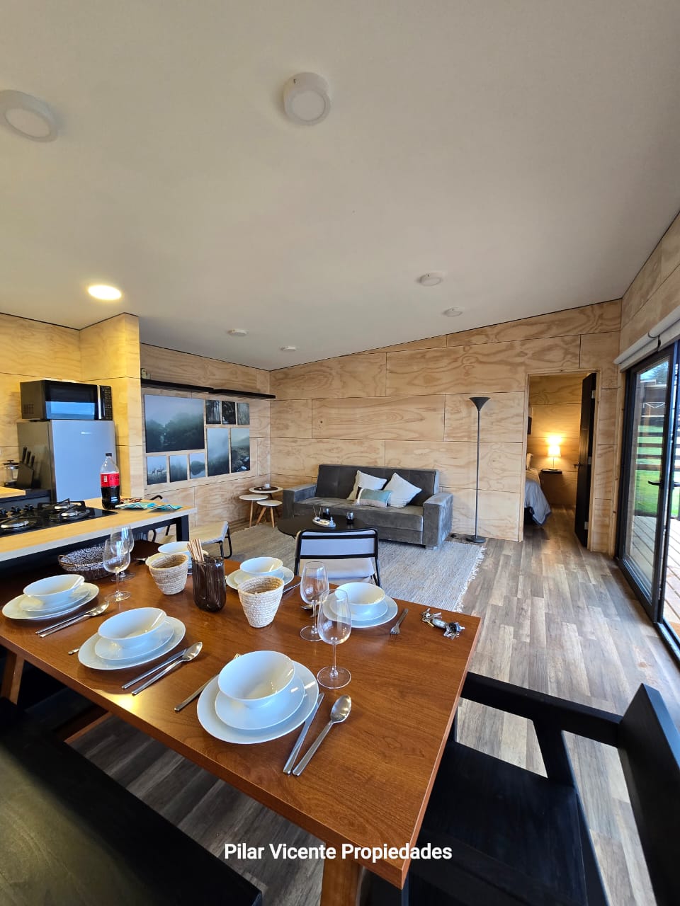 estilo Mariposa, living comedor y cocina concepto abierto,