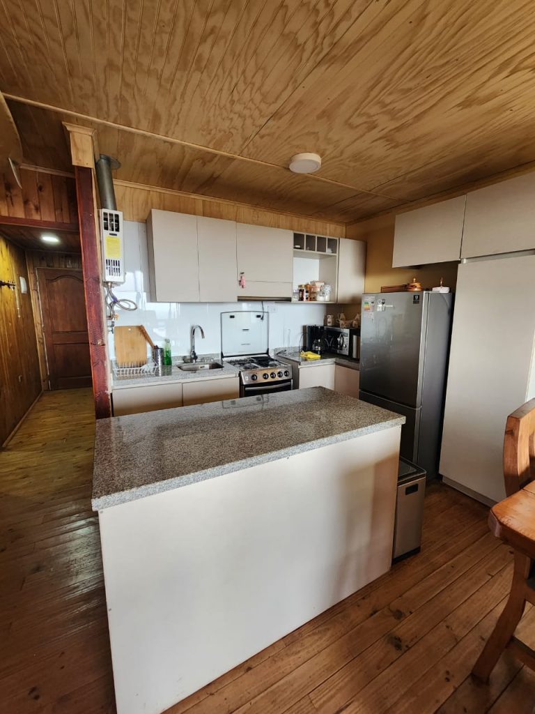 Consta de living comedor concepto abierto, cocina amoblada y equipada